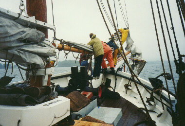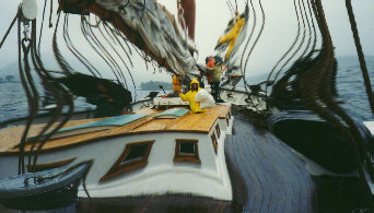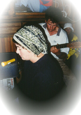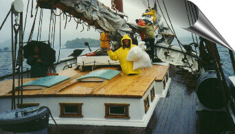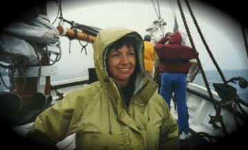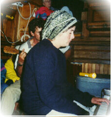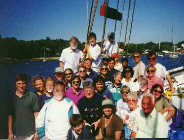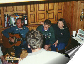 We gathered on the last night of our voyage and had terrific fun singing along with Doug, Jim, a crew member as well as a published singer/musician and one of our guests, Carrie. If you look really closely, you'll see Dot, one of the crew, taking a well deserved break at the top of the steps. Thanks to all the crew: Jim, Andy, Renne and Dot. |
